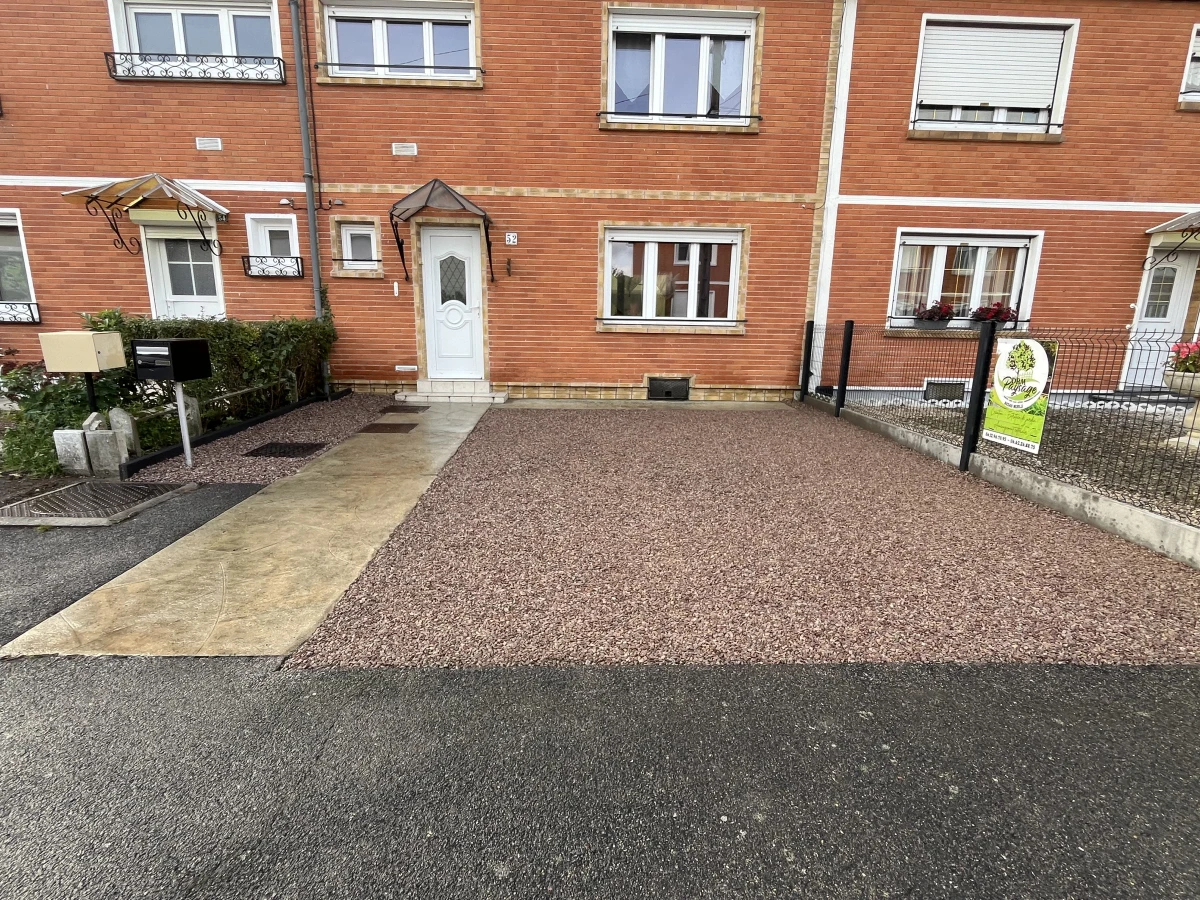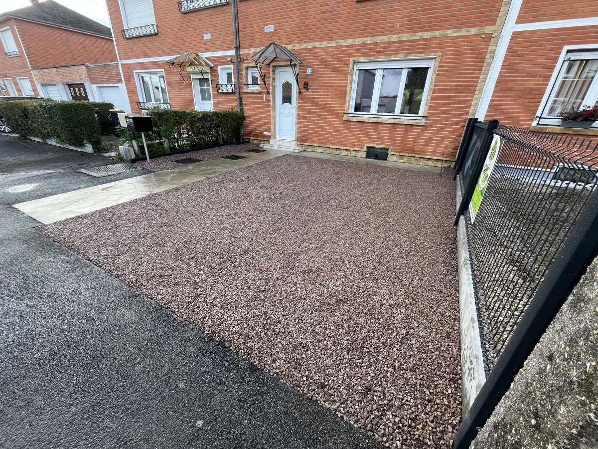Cet aménagement offre un accès pratique, esthétique et écologique, adapté à tous types de véhicules et de piétons.