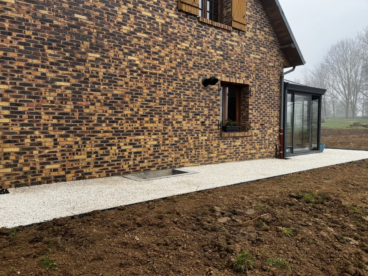 L’entreprise DRM Paysages, spécialisée dans les travaux d’aménagement extérieur, a récemment réalisé un chantier complet d’aménagement paysager dans la commune de Carnoy, dans le département de la Somme. L’objectif du projet était de créer un chemin d’accès pratique, stable et esthétique autour de la maison, tout en valorisant l’environnement extérieur.