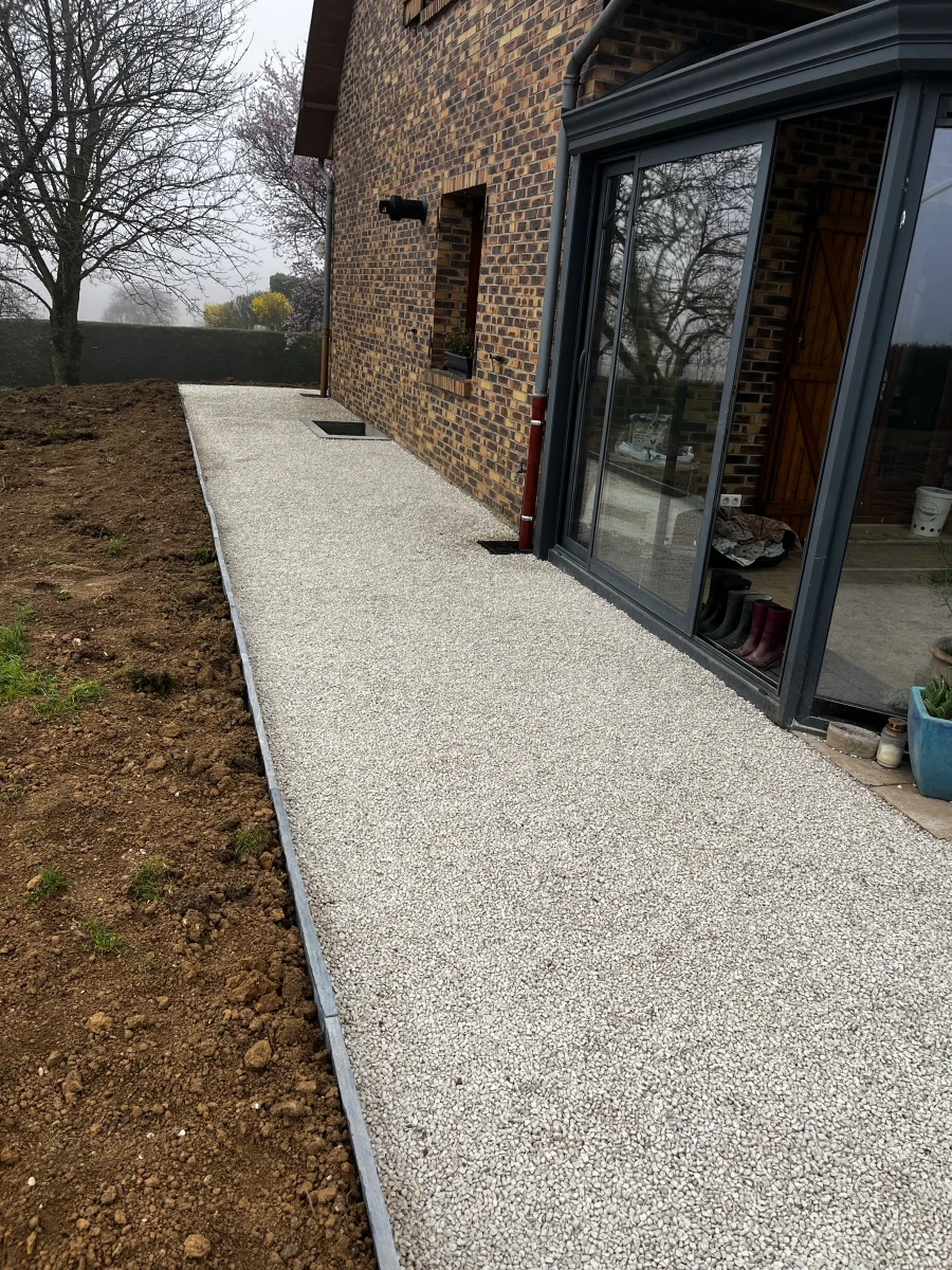Aménagement de chemin d’accès autour d’une maison à Carnoy (Somme) par DRM Paysages