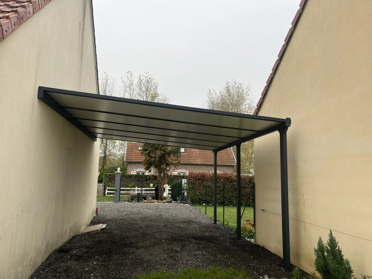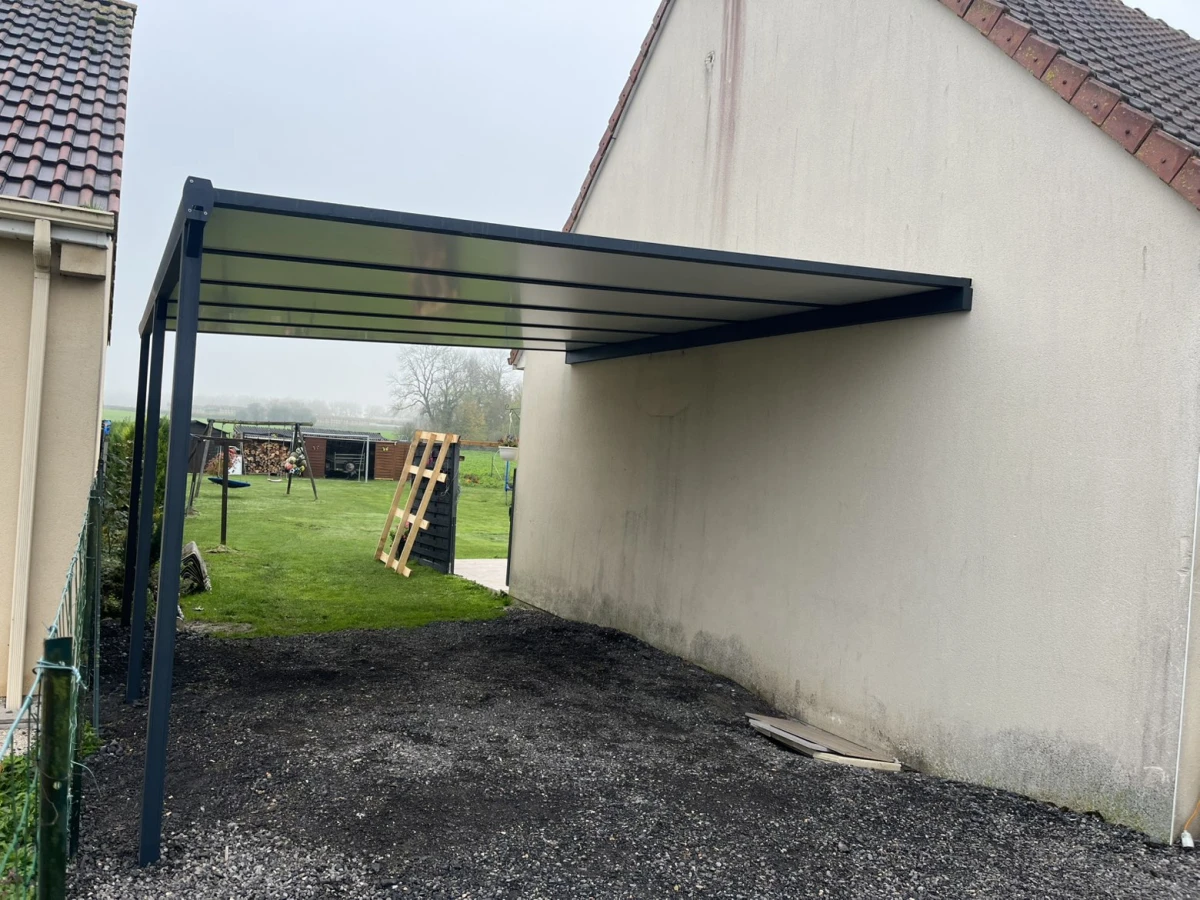 Montage d’un carport aluminium haut de gamme à Villers-Carbonnel par DRM Paysages